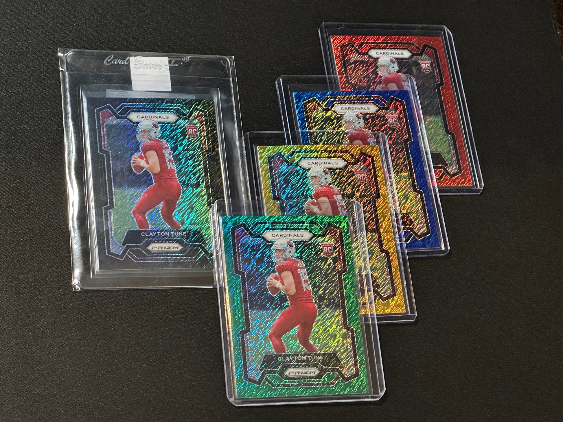 It is our pleasure to introduce the 2023 Panini Prizm Clayton Tune RC Shimmer Set 1 of 1 No 302. Because this set contains the 1 of 1 card Black Shimmer, it's the only complete 2023 Prizm Shimmer Set available/possible for Clayton Tune's Rookie Year. This set was meticulously hunted down from different parts of the USA in January 2024. The next step for this set (unless purchased), is grading. After which the price will go up.